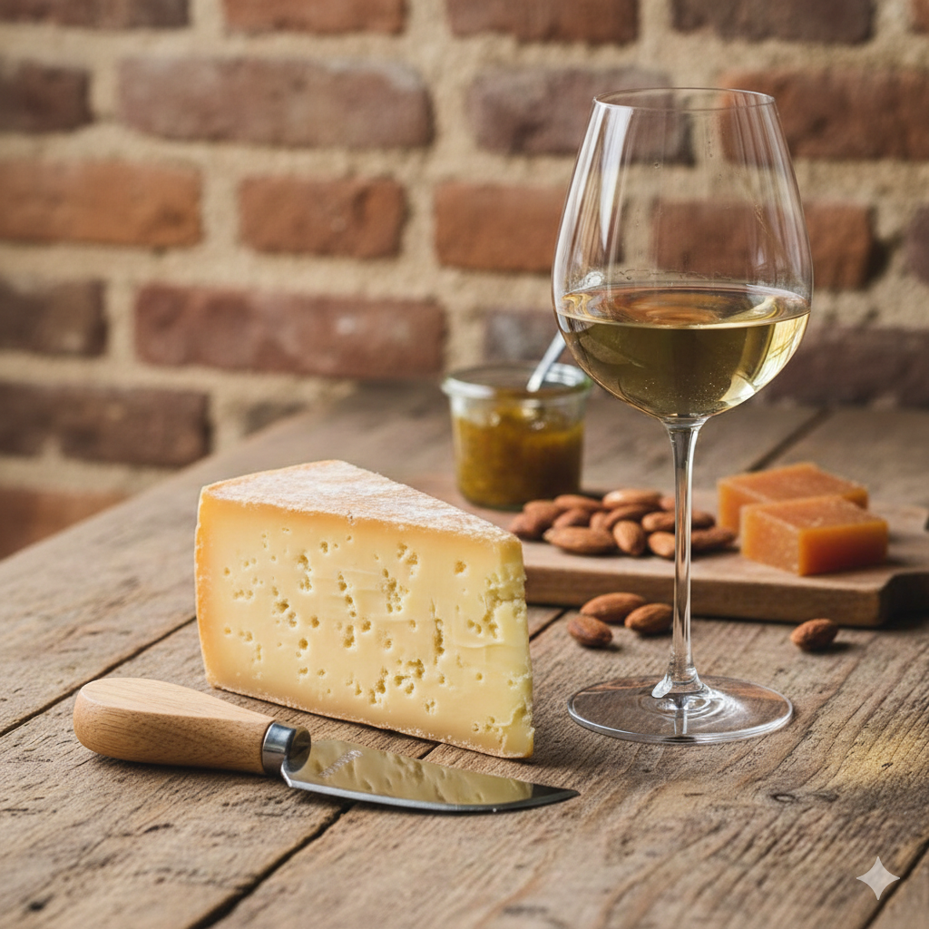 - L’estructura: El Foranell Picapoll Blanc no és un vi blanc lleuger qualsevol; té prou cos i estructura per no desaparèixer davant d’un formatge de pasta cuita amb tanta personalitat.